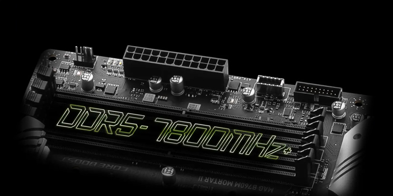 Một bước tiến lớn trong việc nâng cao hiệu suất với bộ nhớ DDR5 mới nhất, DRAM lên đến 7800+ (OC) MHz. Kết hợp với quy trình hàn SMT chuyên dụng và công nghệ MSI Memory Boost, Mainboard PC MSI MAG B760M MORTAR WIFI II sẵn sàng mang đến hiệu năng bộ nhớ đẳng cấp thế giới.